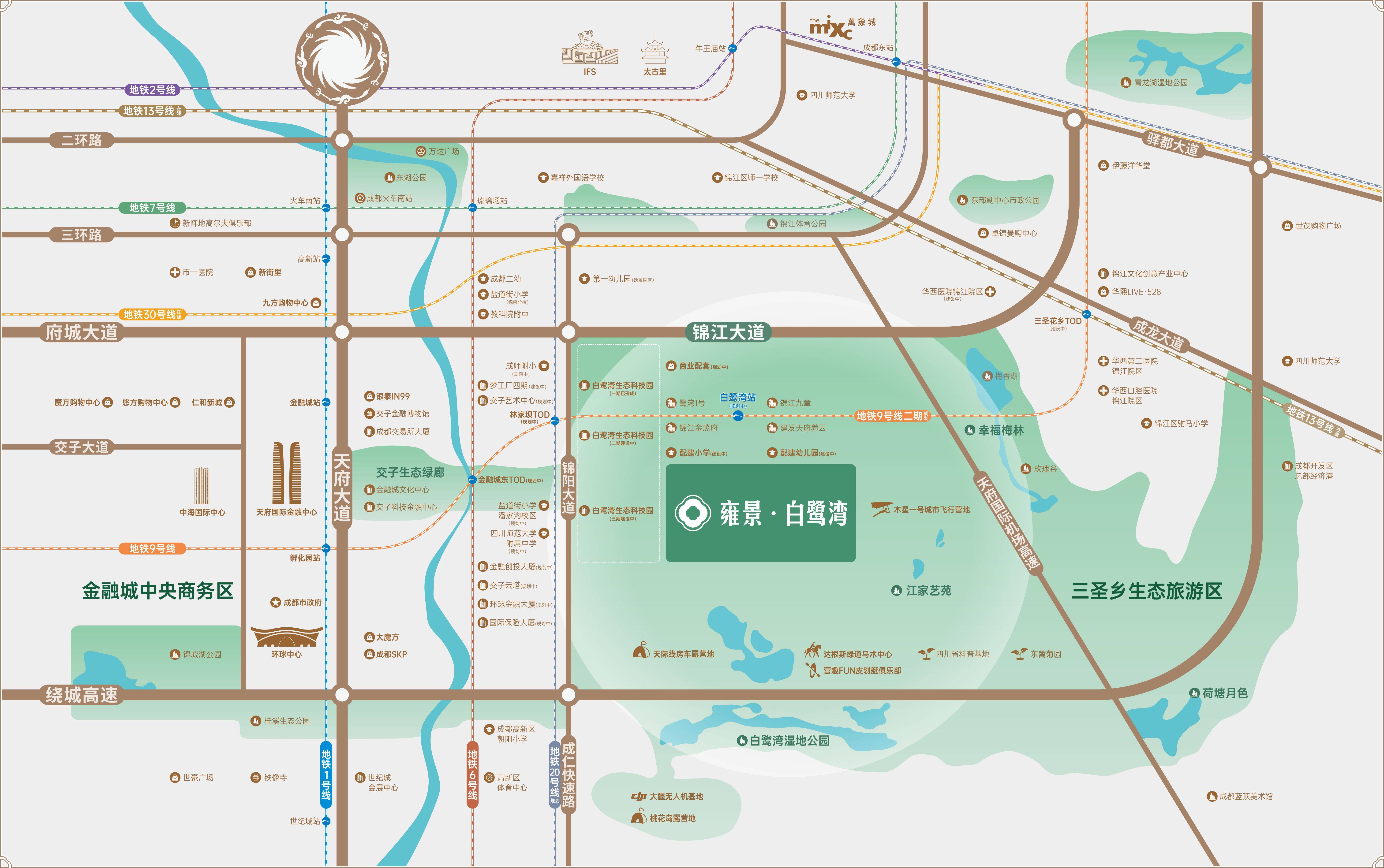 周边坐落华西附二院锦江院区、华西病院锦江院区、华西口腔锦江院区,东临三圣乡4A风光区,林家坝TOD片区,开市客Costco(规划中),南临白鹭湾湿地公园。奇异空间、SKP、全球核心、招商大魔方、银泰核心in99、华熙528等,本文部门材料、部门图片来历于收集,坐拥成都高端糊口商圈!